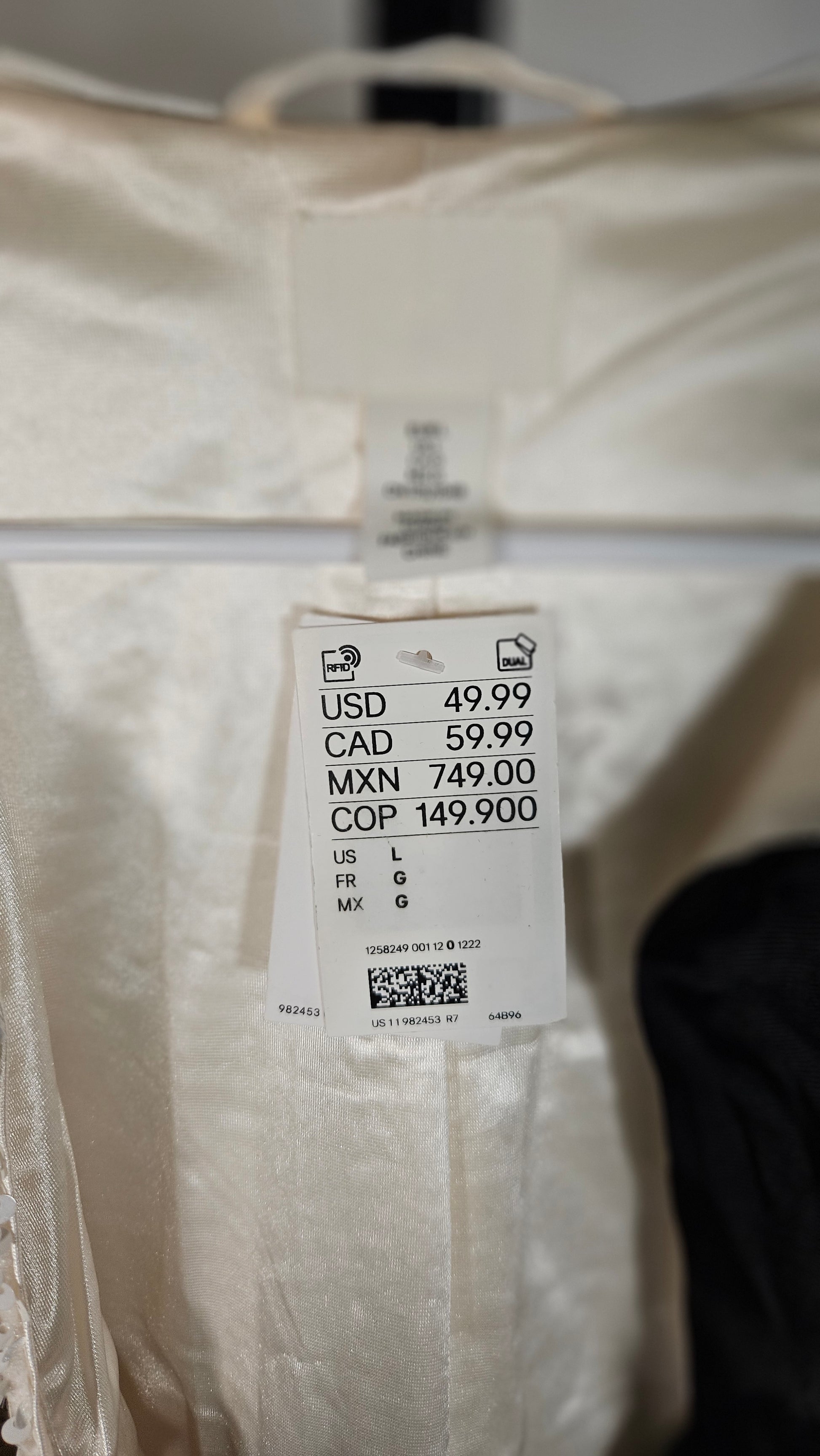 Women White Fragrant Jacket Retro Bow Ribbon Coat Flip Collar French Light Versatile Classic Top size L