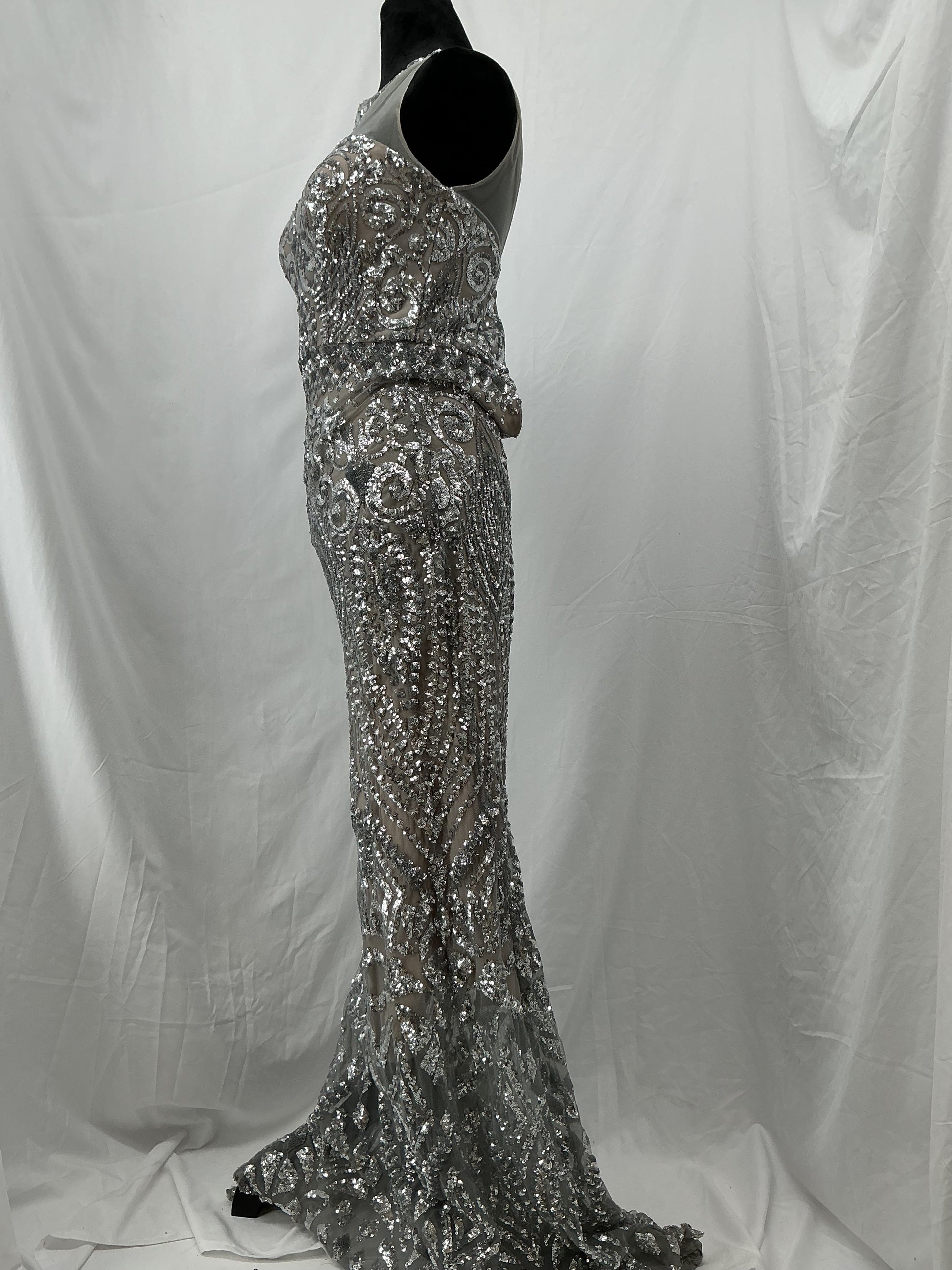 Silver Sequin Long Dress Size 2
