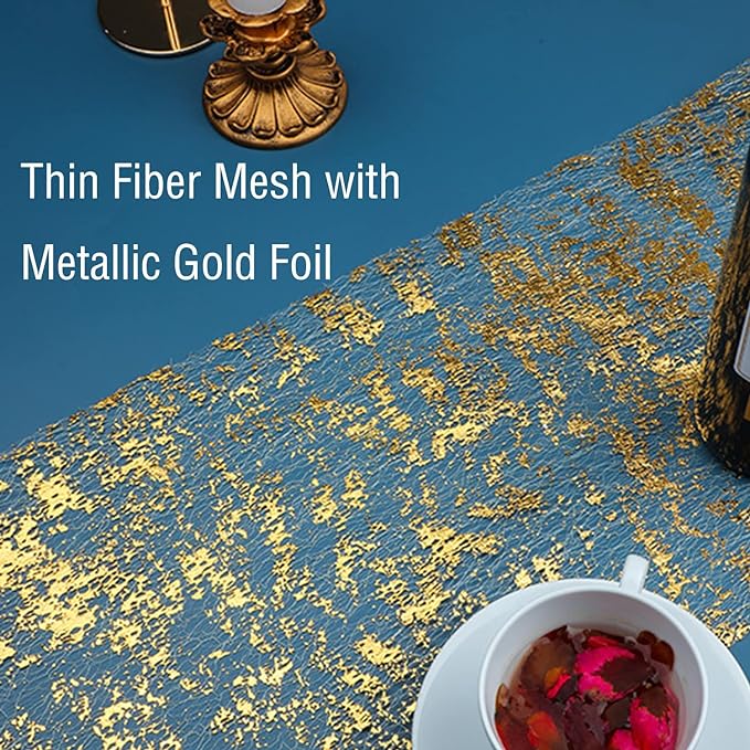 Snowkingdom 2 Pieces Gold Table Runner, Sequin Glitter Foil Metallic Thin Mesh Runner Roll 11"x108", Gold Table Decorations for Event Party, Wedding, Birthday Party, Christmas