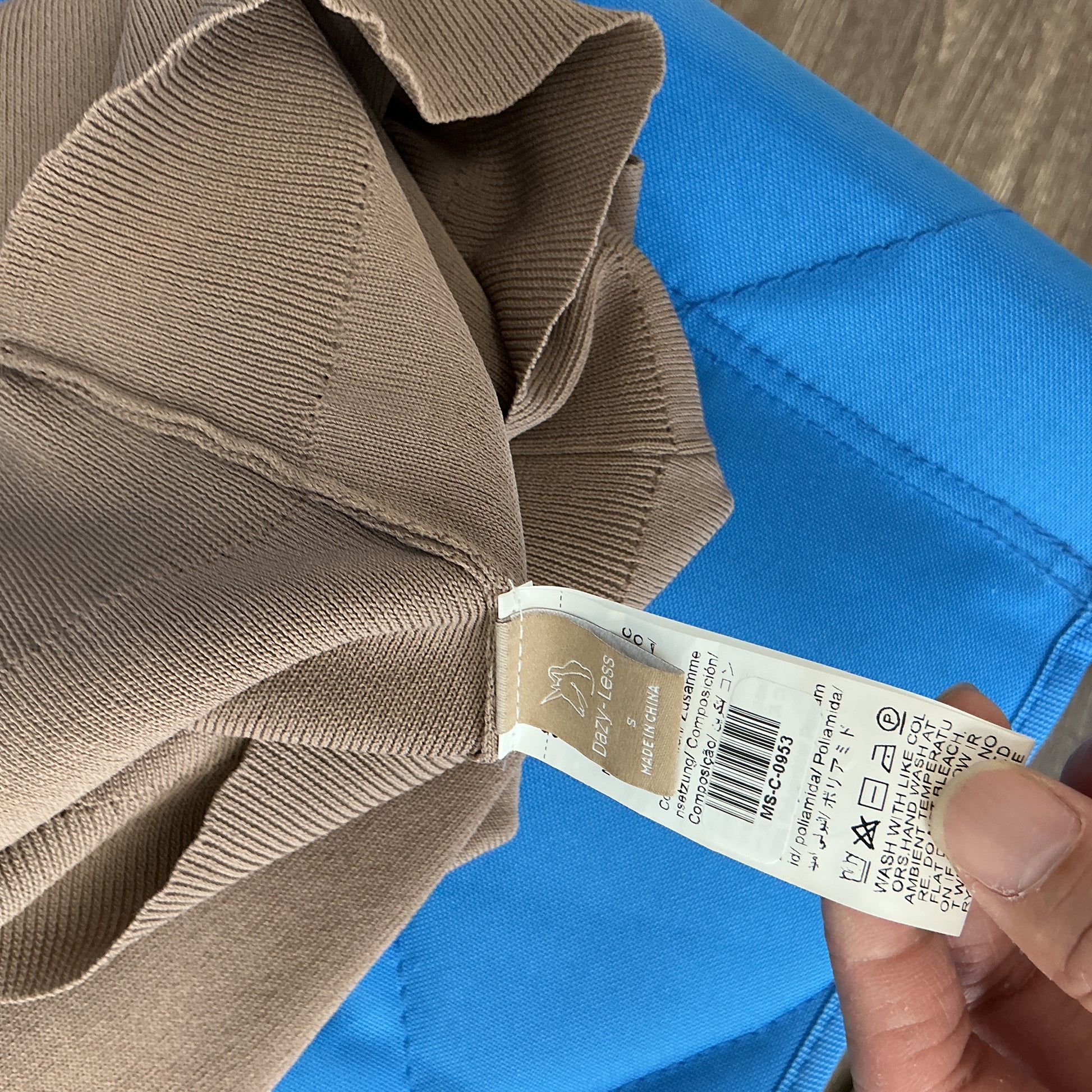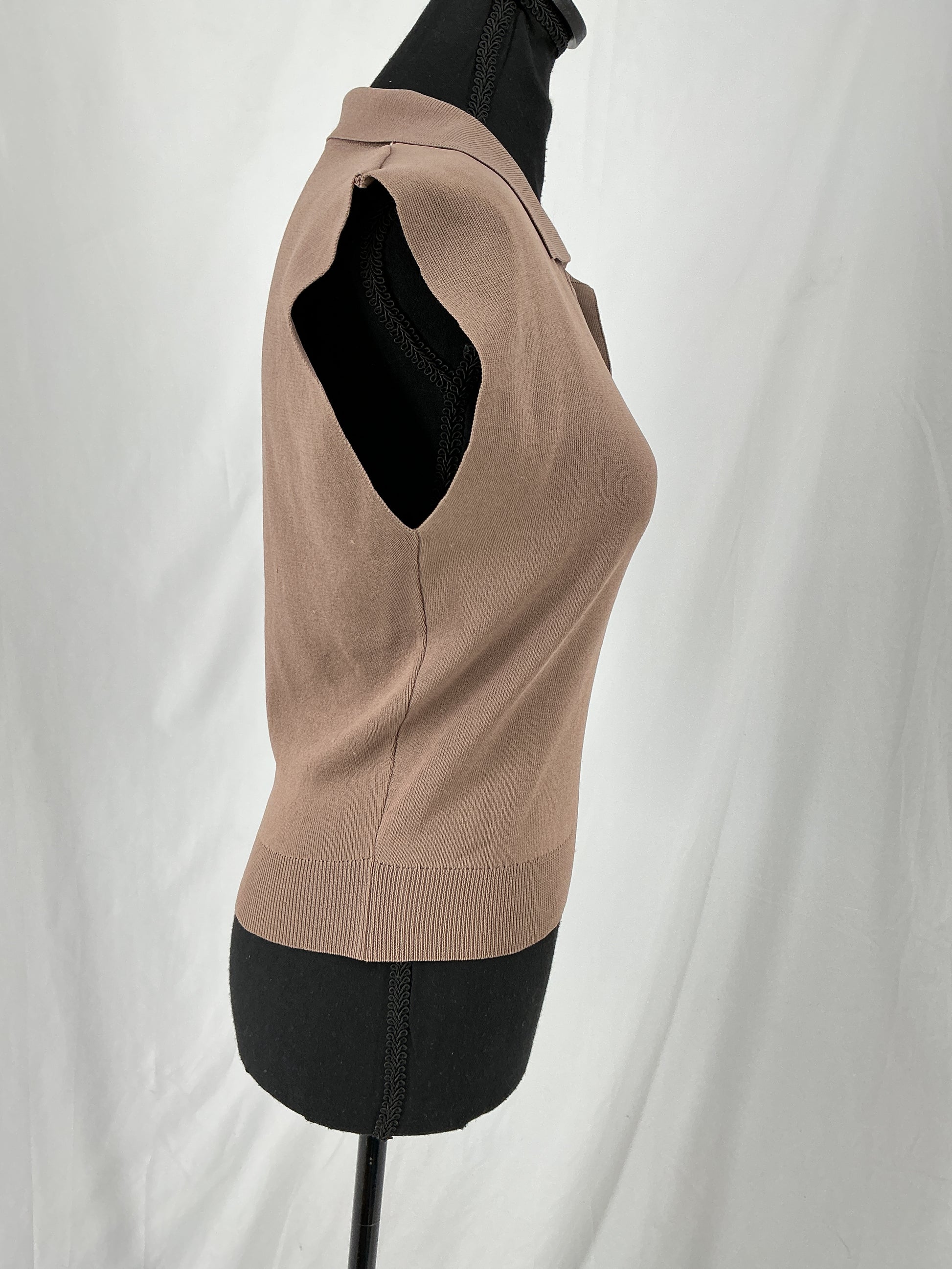Taupe Rib Knit Cap Sleeve Polo Top Size S