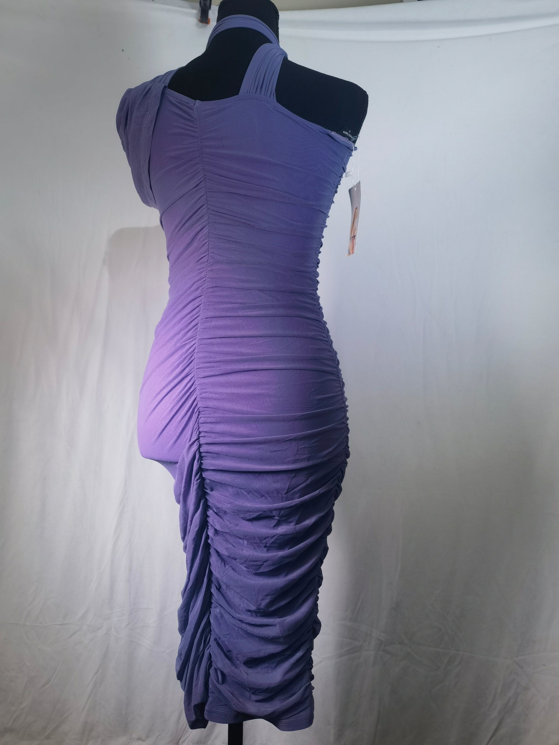 Pretty Garden Lavender Ruched Midi Dress Size Large Bodycon Off Shoulder Party Size S