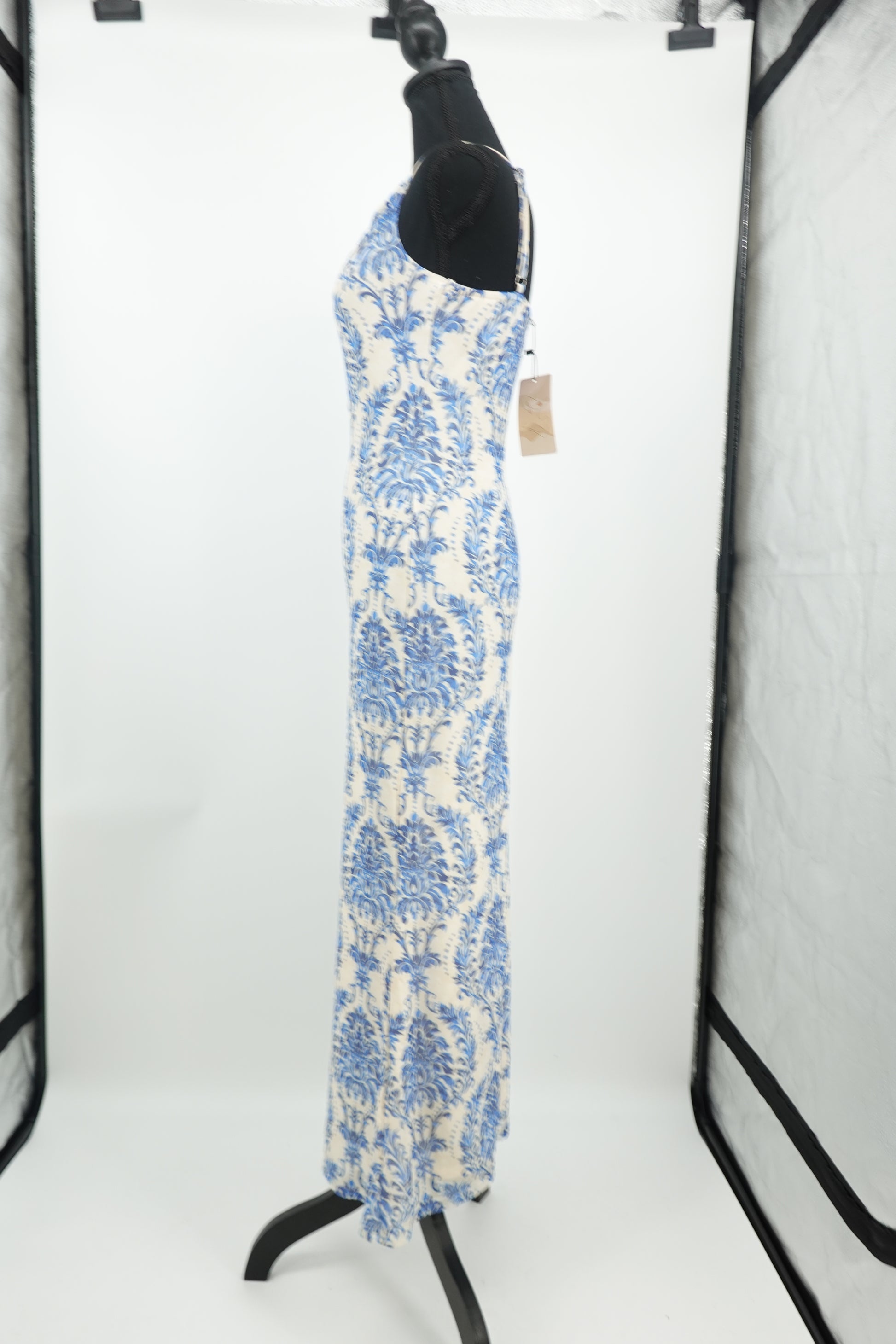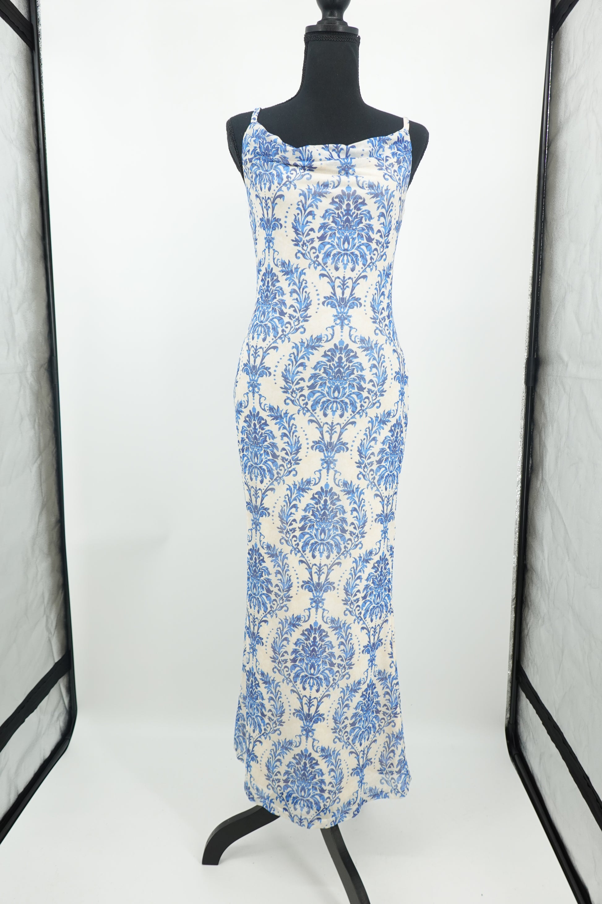 Women's Blue Floral Print Spaghetti Strap Maxi Dress – Size Small