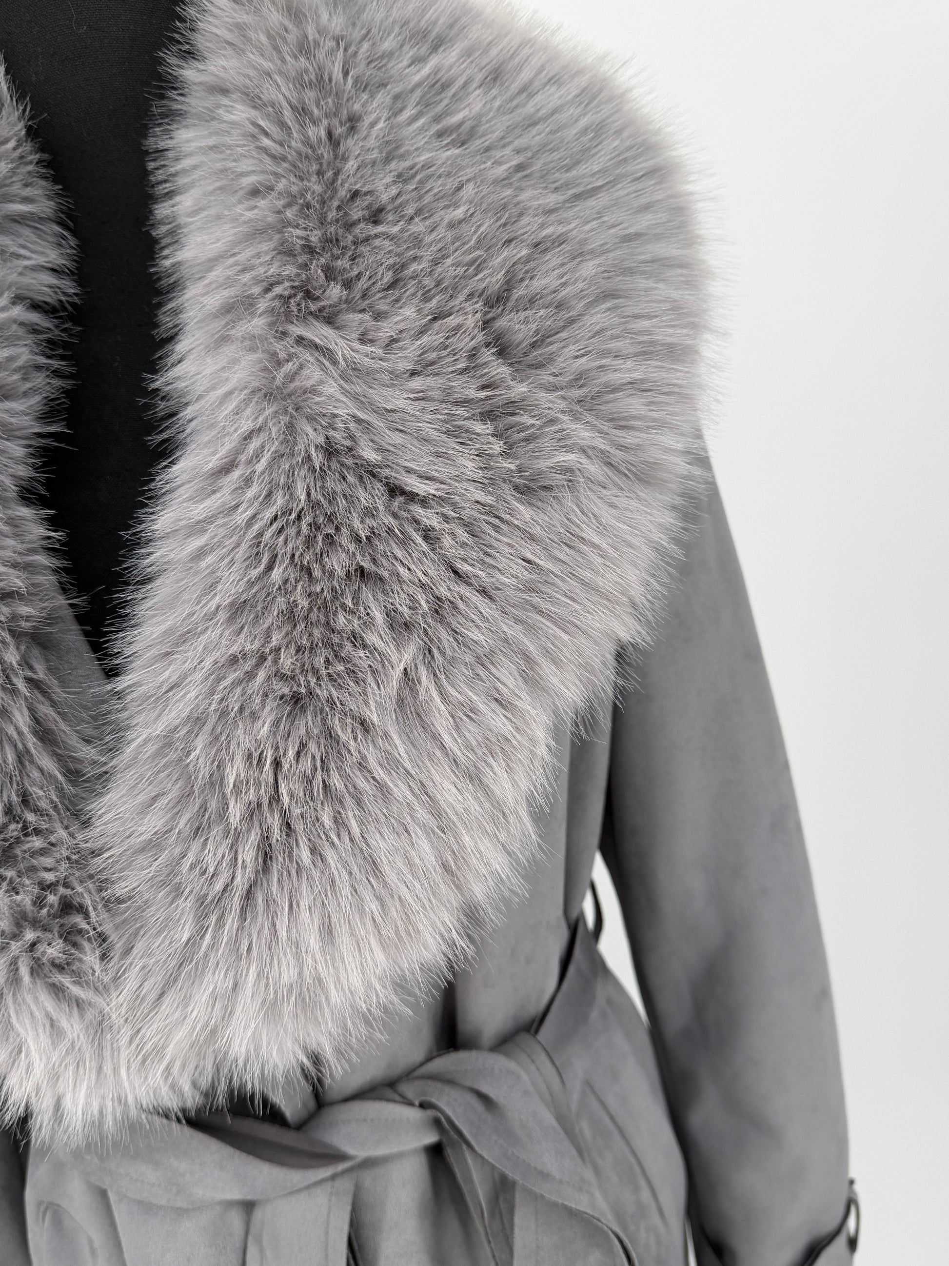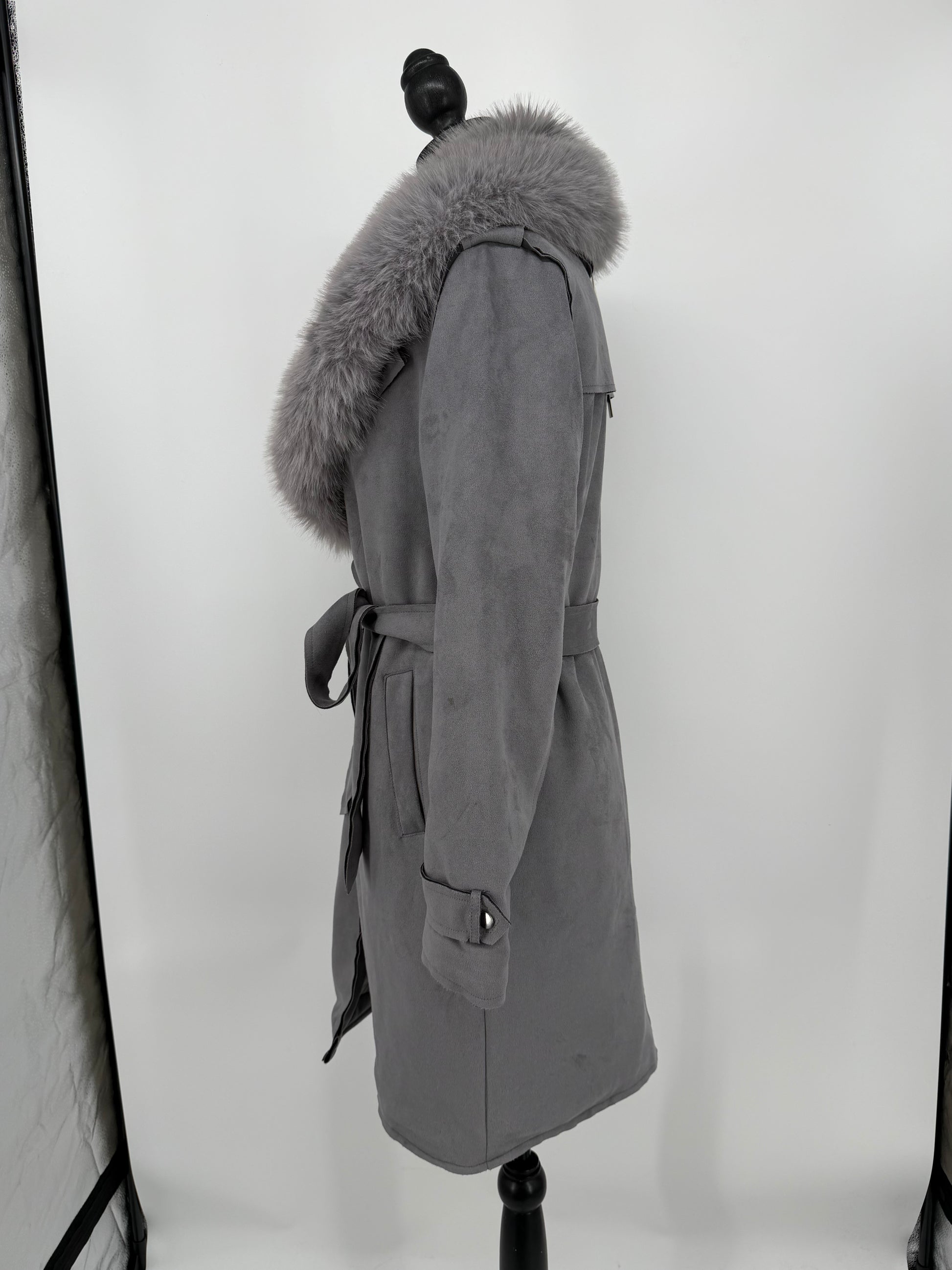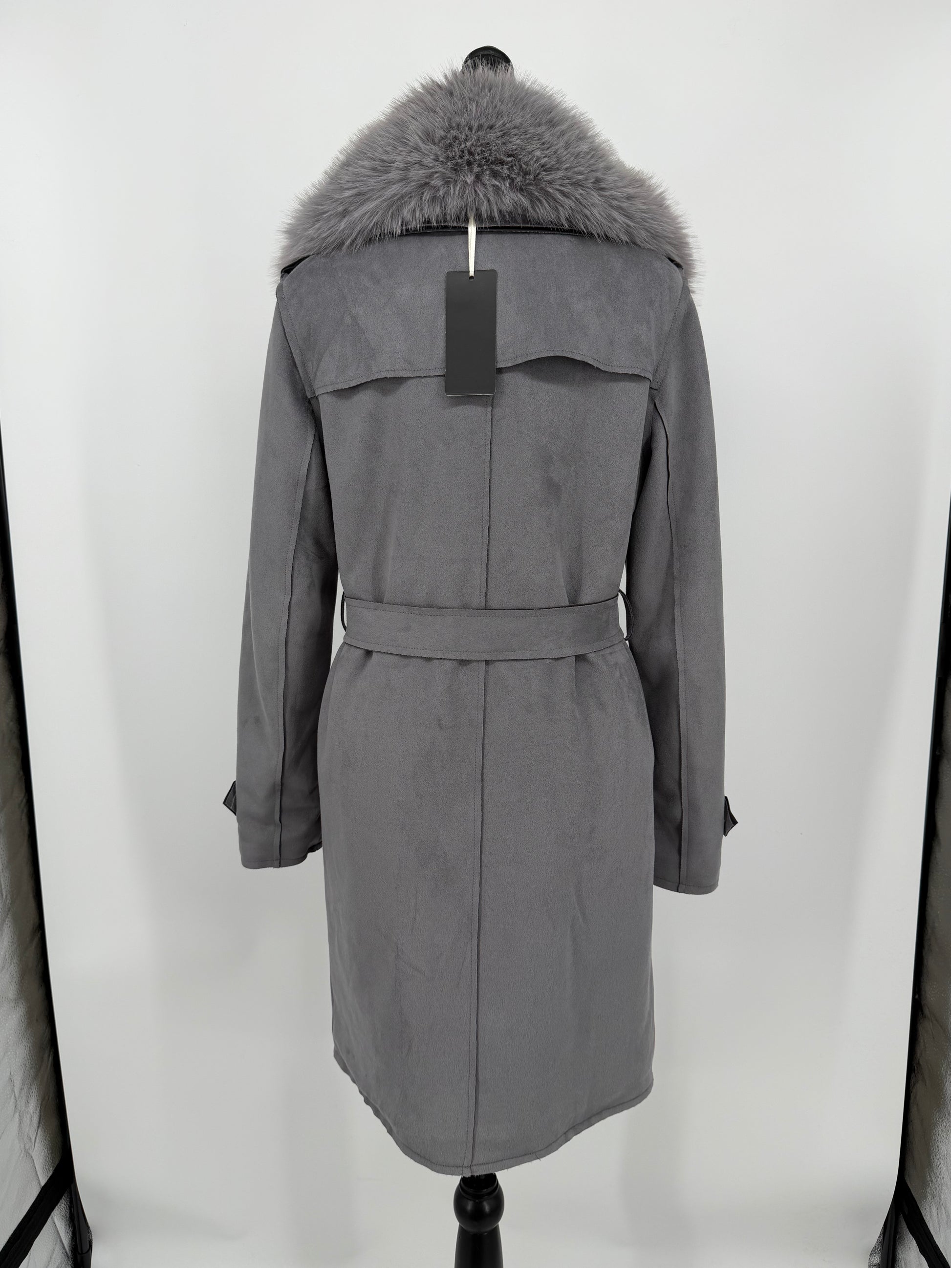 Women's Gray Fur Collar Coat – Size S