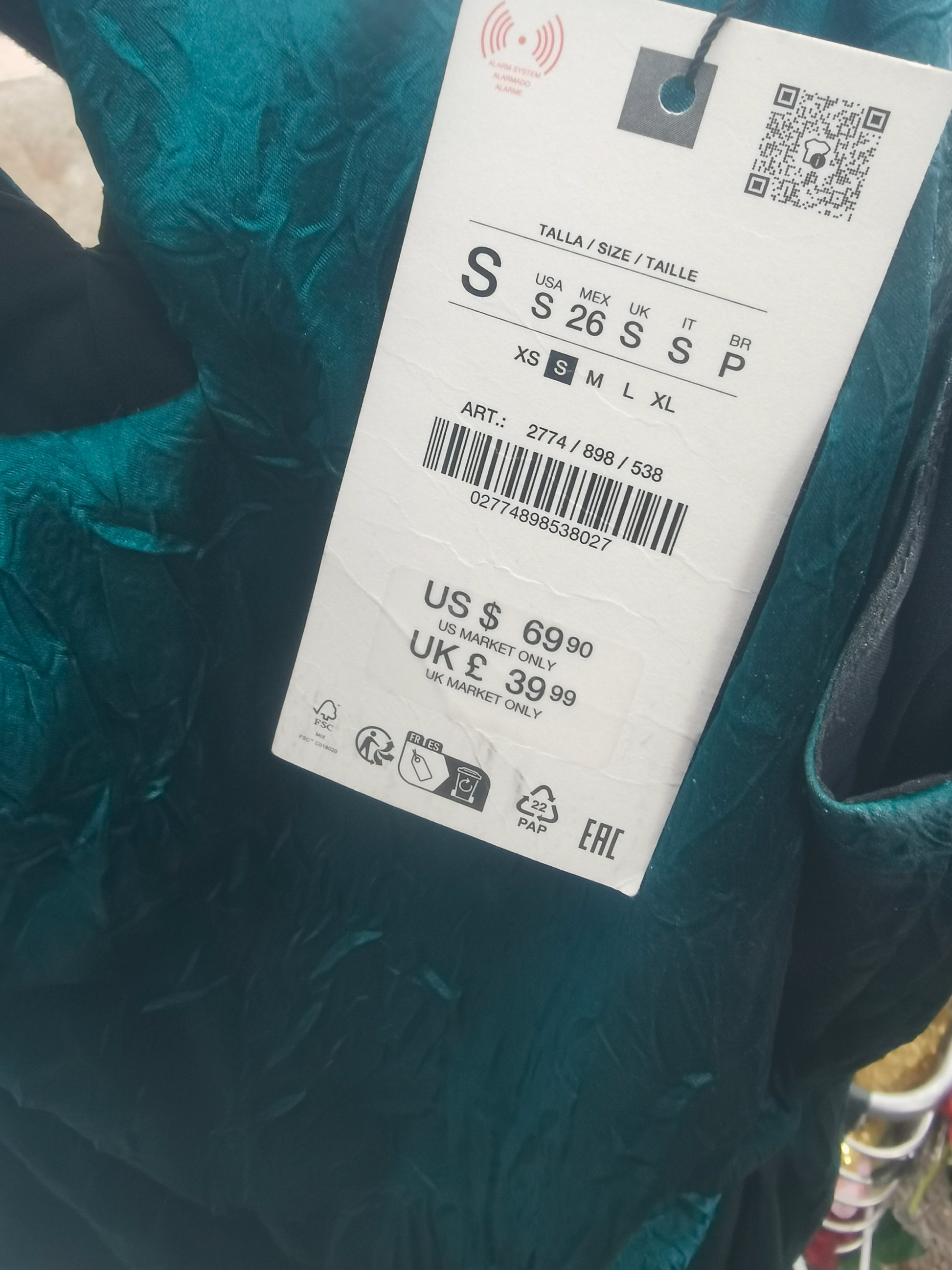 ZARA Women's GOLD APPLIQUÉ SATIN MIDI DRESS Size S