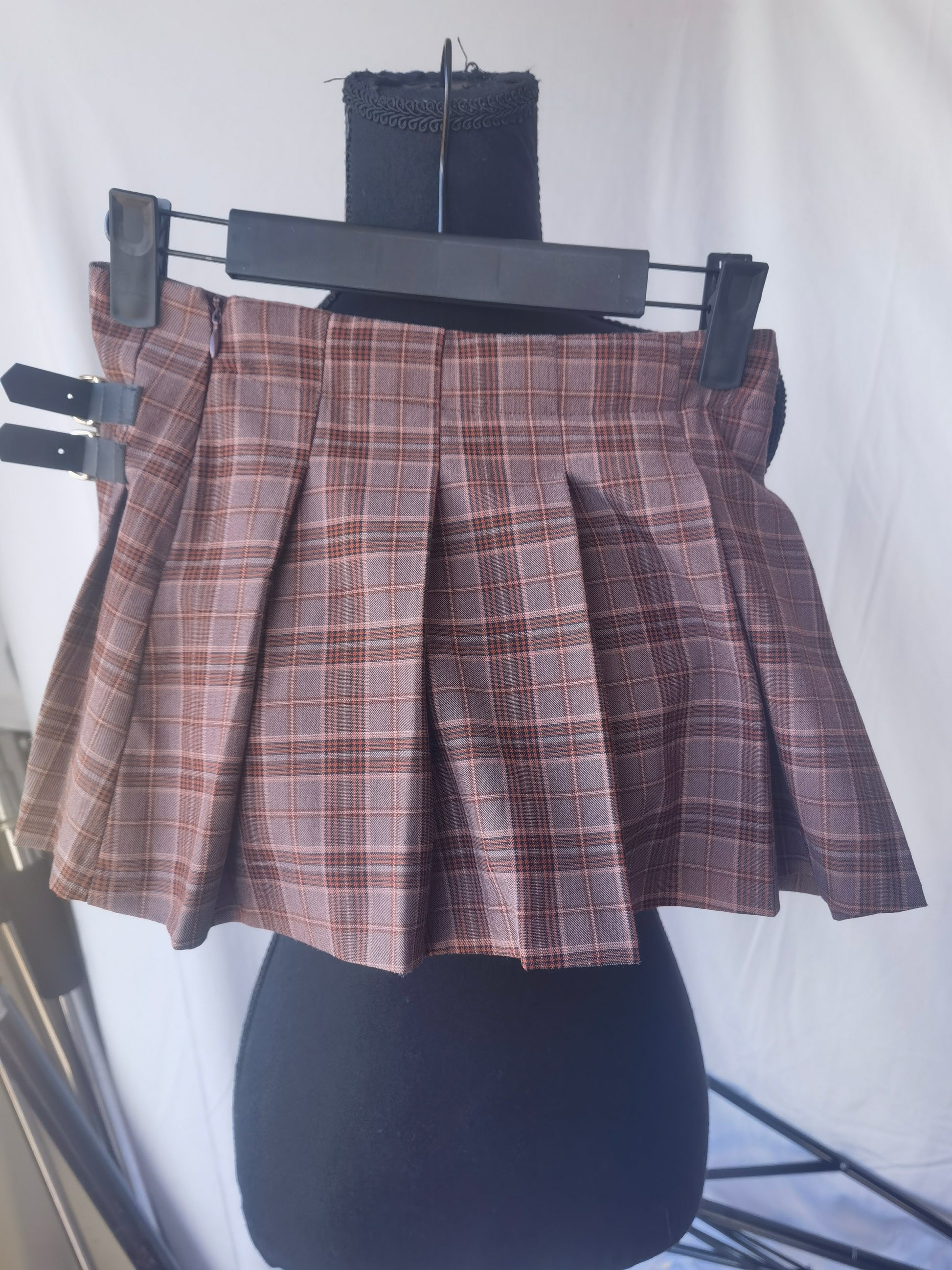 - Matching: This versatile plaid skirt pairs well with a variety of tops and footwear options. For a chic and polished look, pair it with a crisp white blouse and heels. To create a more casual and trendy outfit, team it up with a tucked-in graphic tee and ankle boots. You can also layer it with a cropped sweater or a tailored blazer for a more sophisticated ensemble.