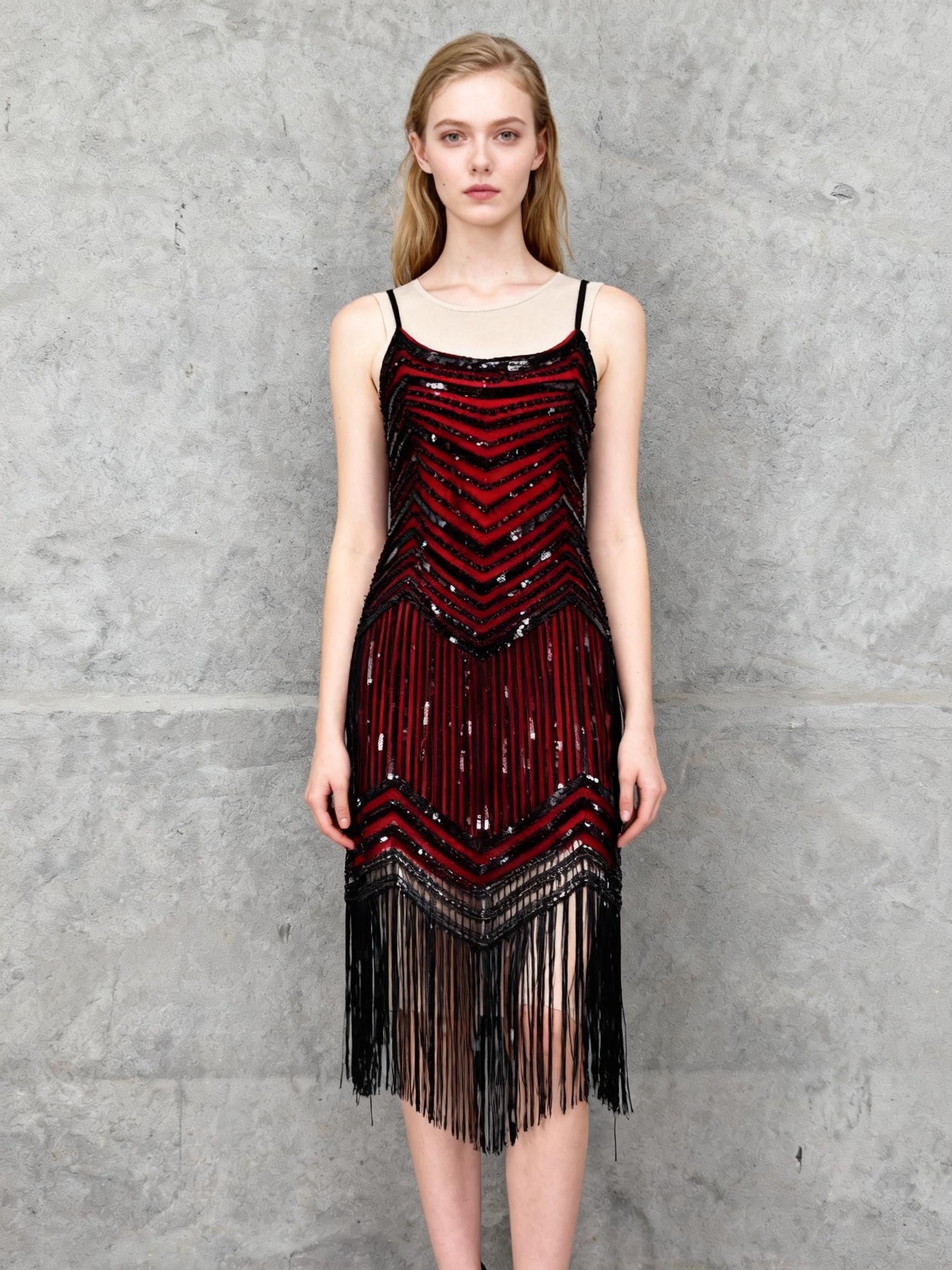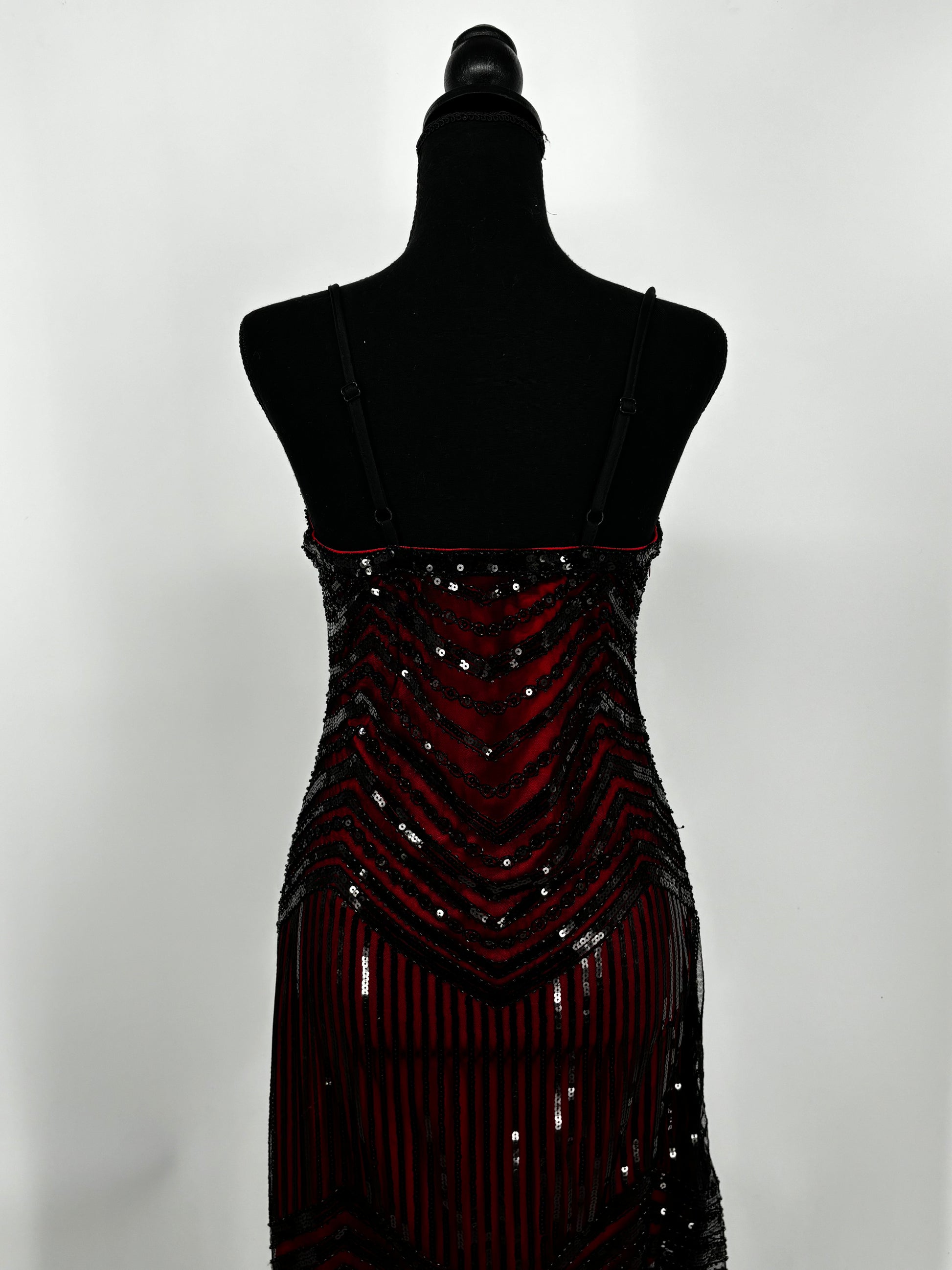 Women's Red Cami Top with Black Sequin Fringe Skirt – Size M