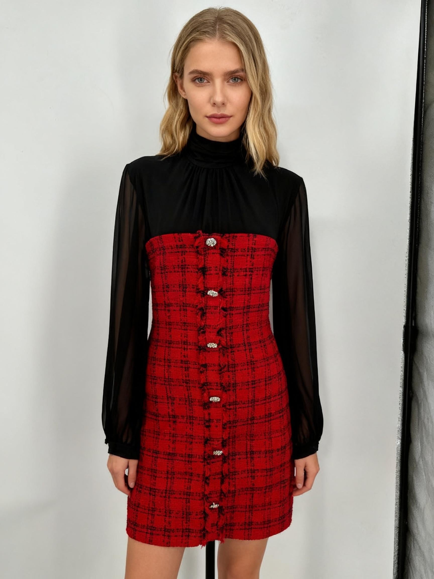 Women's Red Dress Black Sheer Sleeves – Size S