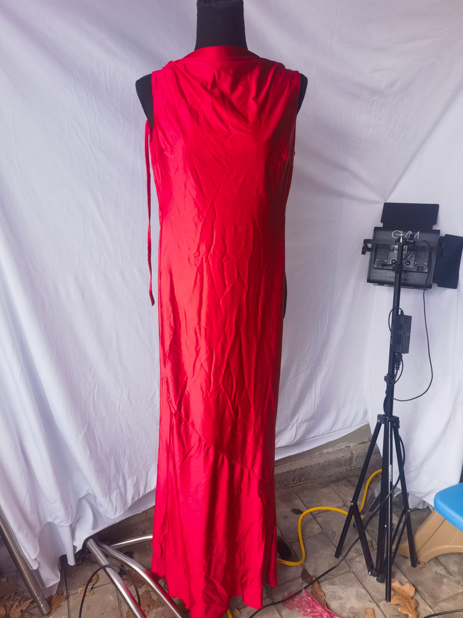 Oplxuo Women's Satin One Shoulder Wedding Guest Dress Sexy Ruched High Slit Long Maxi Dress Cocktail Evening Party Dresses Size S