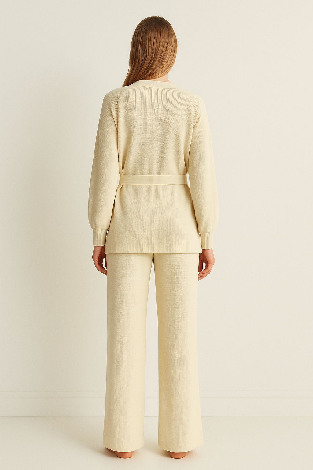 Women's Fall Winter 2 Piece Outfit Warm Cardigan with Belt Knitted Sweater Wide Leg Pants Going Out Loungewear Set Size M