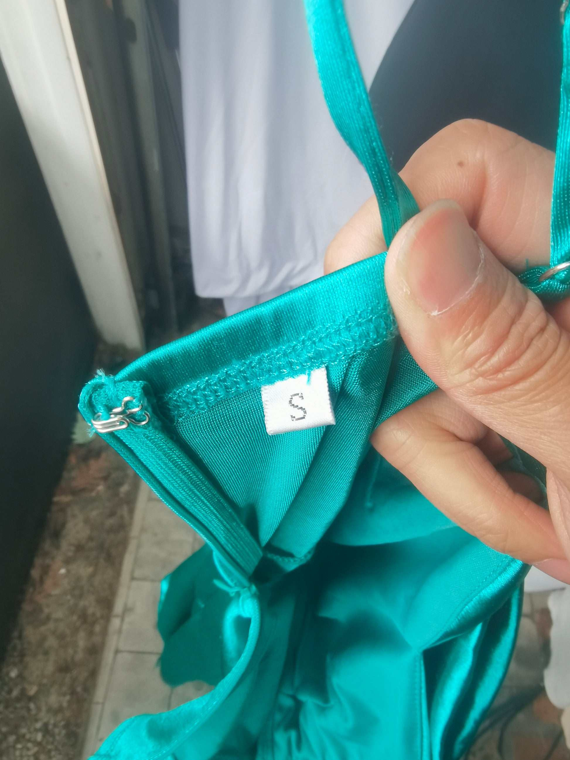 SHEIN Women'sCrisscross Backless Split Thigh Satin Cami turquoise thin strap high slit drape satin long skirt size S
