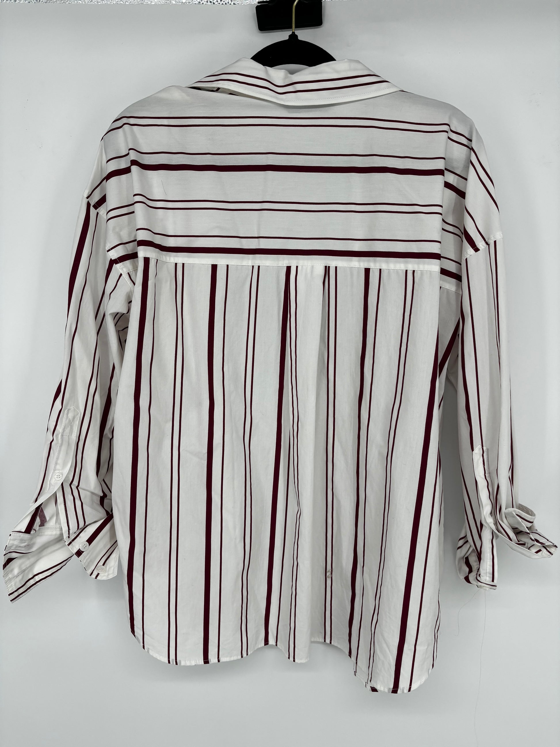 ZARA Men’s White Shirt with Red Stripes – Size M