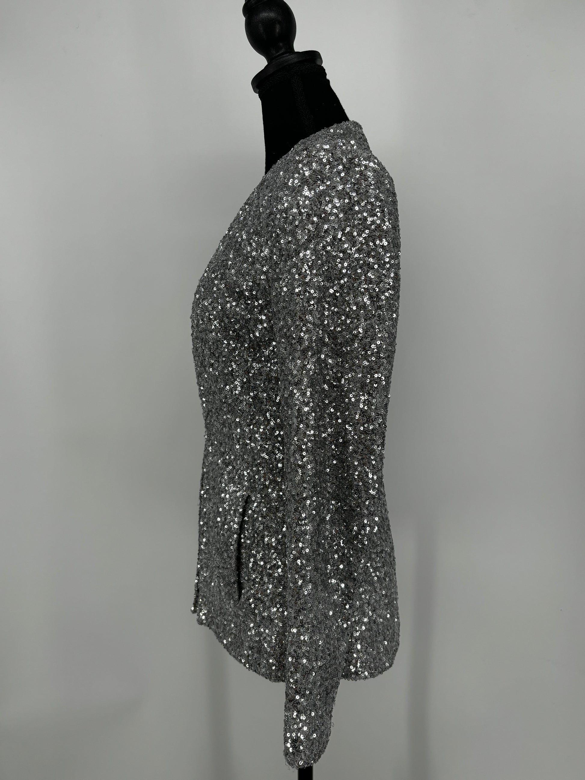 Zara Women’s Silver Sequin V-Neck Blazer size s