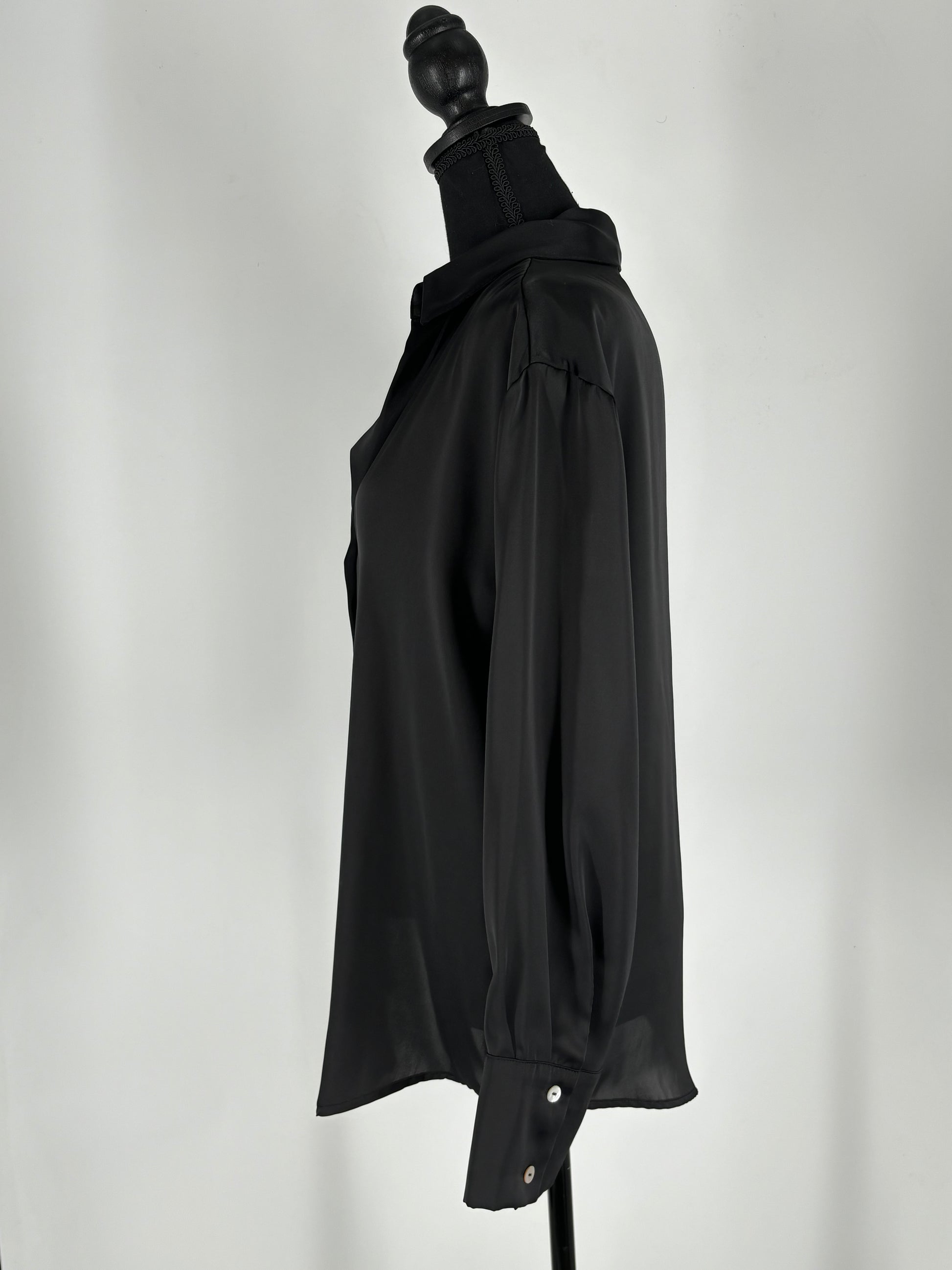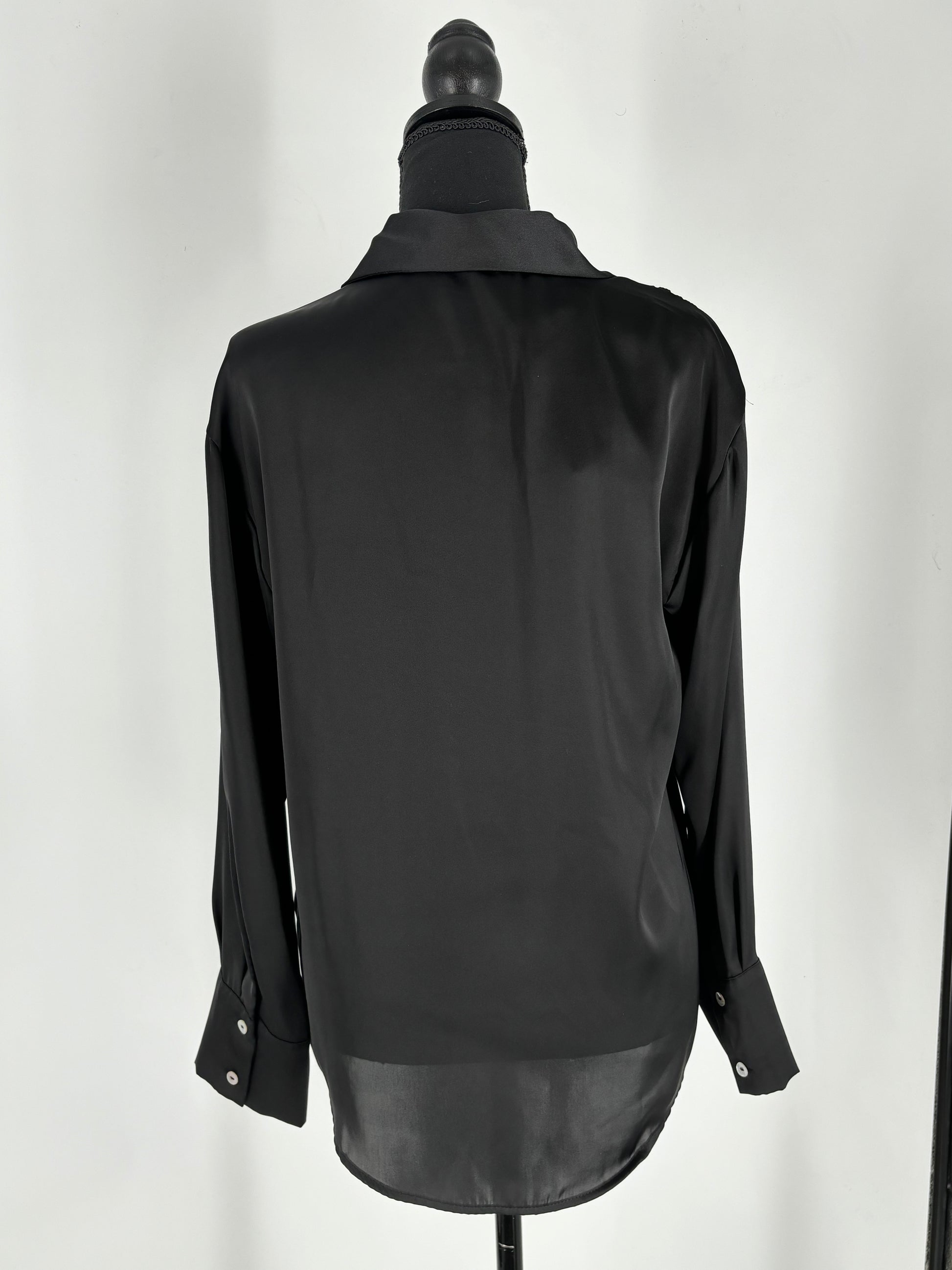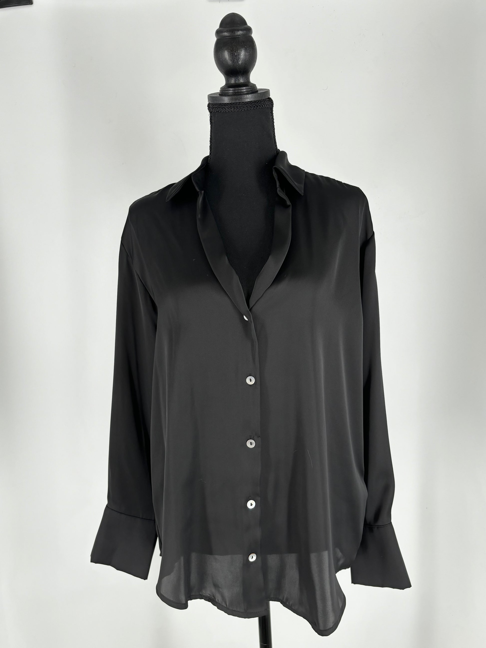 ZARA Women's Elegant Black Silk Button-Up Blouse – Size S